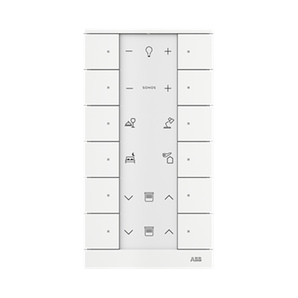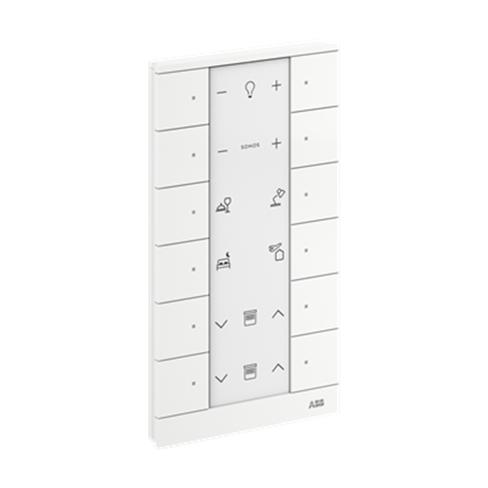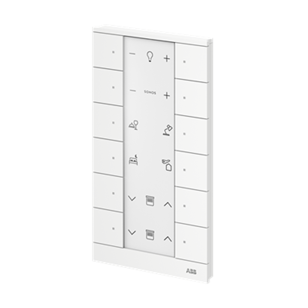 For transmitting switching, push-button, dimming and blind commands to an ABB-free@home® actuator. With integrated bus coupler. With labelling field. With integrated room temperature controller for direct control of heating actuators Setpoint temperature can be adjusted via App or Panels. Number of bus subscribers: 1