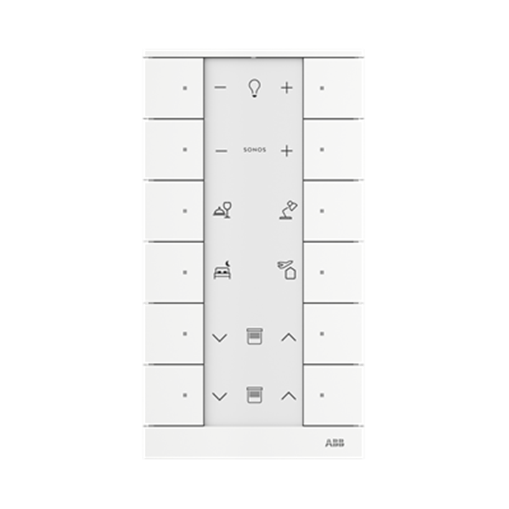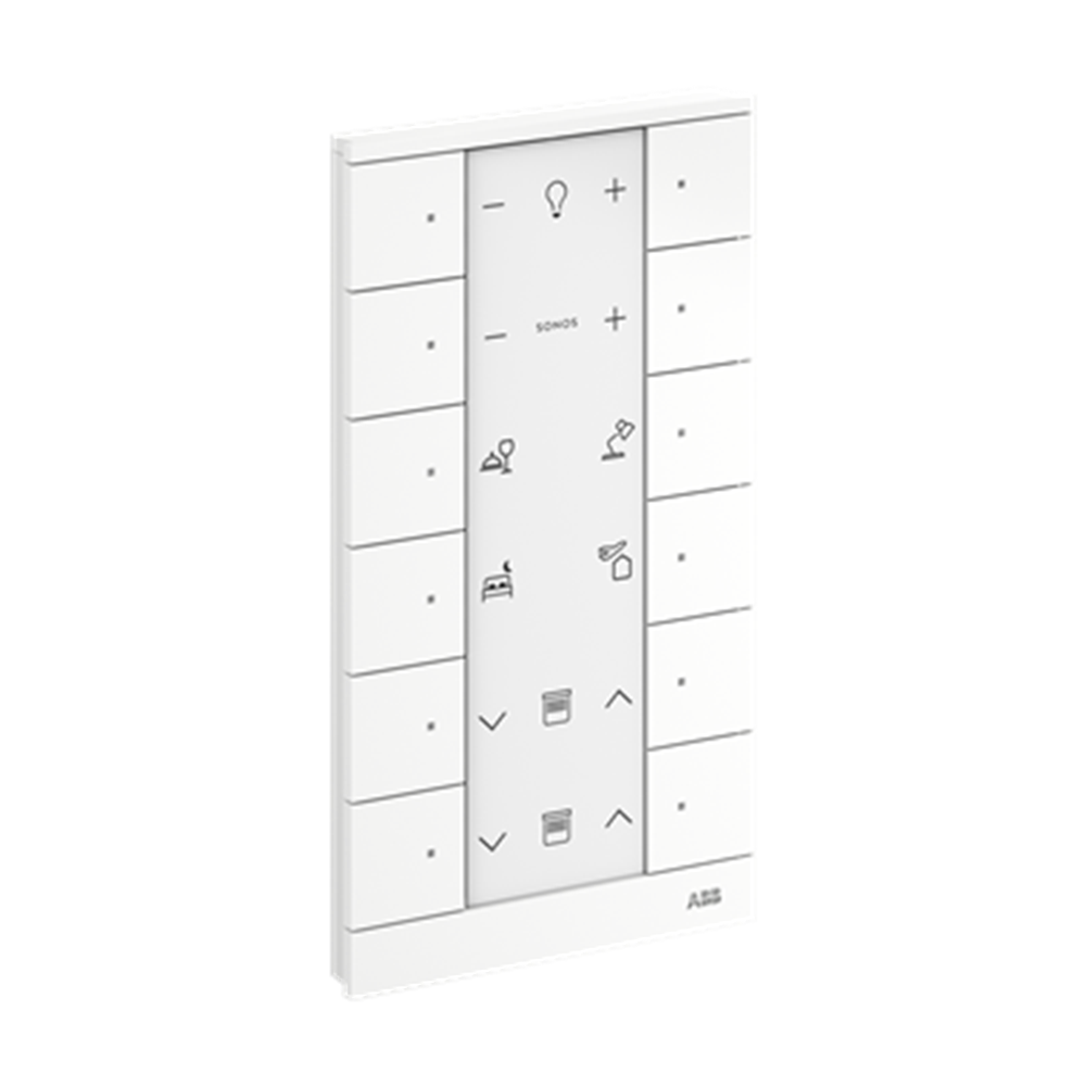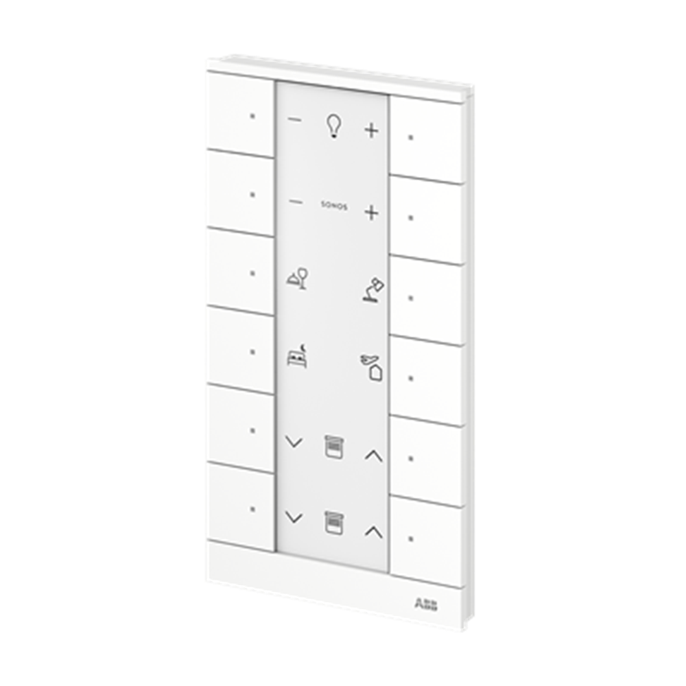 For transmitting switching, push-button, dimming and blind commands to an ABB-free@home® actuator. With integrated bus coupler. With labelling field. With integrated room temperature controller for direct control  of heating actuators Setpoint temperature can be adjusted via App or Panels. Number of bus subscribers: 1