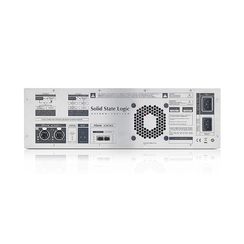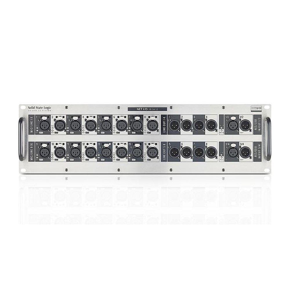 SB 16.12 is a 3U ruggedised enclosure featuring dual redundant power supplies, 16 mic/line inputs, 8 analogue line outputs and 4 digital inputs and outputs on 2 AES3 input/output pairs. It has a pair of redundant RJ45 Dante network connections in addition to a user configurable SFP port that can be fitted with RJ45 or optical connectors. These can be used for network extension or to provide network separation for the gain-compensated Dante “split”, for connection to a second Dante-equipped console or appropriately equipped device on a different network. It has individual signal present, clip and phantom power LED’s as well as global indication of PSU, Network A and B and Hardware status. SB 16.12 can operate at 96kHz or 48kHz sample rates.