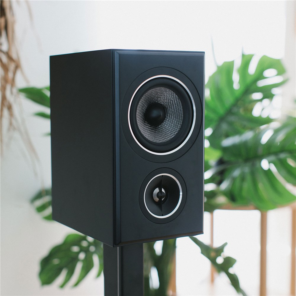 With minimalist elegance offered through a slim and compact cabinet design and neutral Satin Black and White finish options, the B50 bookshelf speakers integrate seamlessly into any space. Aluminum trim and chamfered edges not only captivate the eye but also sync perfectly with the PWM Series, creating an entertainment oasis at home.