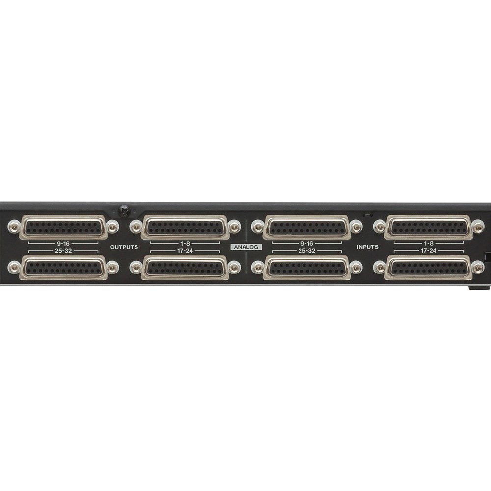 ML-32D is equipped with D-sub 25-pin connectors as analog line input/output connectors, and combining with optional breakout boxes enables conversion to Euro Block and XLR.