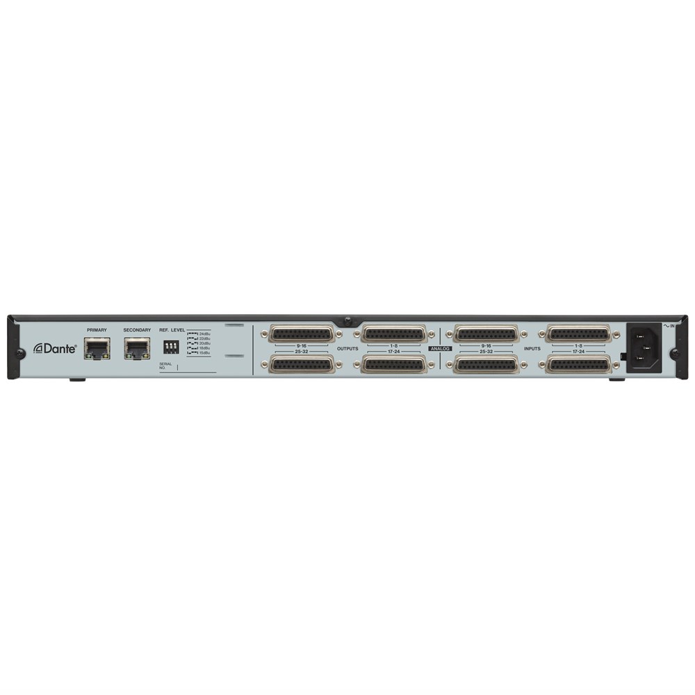 The ML-32D has four D-Sub inputs and four D-Sub outputs, which can easily be connected to any of the many devices that utilize D-Sub connectors such as microphone preamplifiers, large and small format console mixers, audio interfaces, amplifiers, and euro block connector devices. This simple, yet elegant, solution enables audio to be quickly and easily inserted into – or extracted from – the Dante audio stream.
