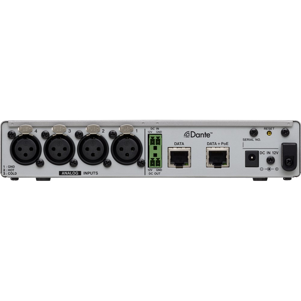 The MM-4D/IN-X converts 4-channel mic/line input signals into 4-channel Dante output signals. It also supports 4-channel Dante input/output making it possible to use audio sources within an established Dante network.