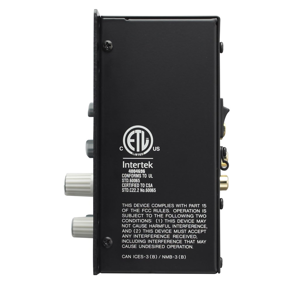 Twin outputs each feature a combination of balanced XLR or RCA unbalanced connectors for easy integration into virtually any audio system. This flexibility allows combinations of microphones, CD/DVD/Blu-ray players, instruments - or any other audio source - to be selected or muted, and sent simultaneously to the dual outputs, each with it’s own volume control. Finally, the convenient “Talkover” function will automatically lower any mixed channel source so the microphone connected to the front panel can easily be can be heard in whichever zones you choose.