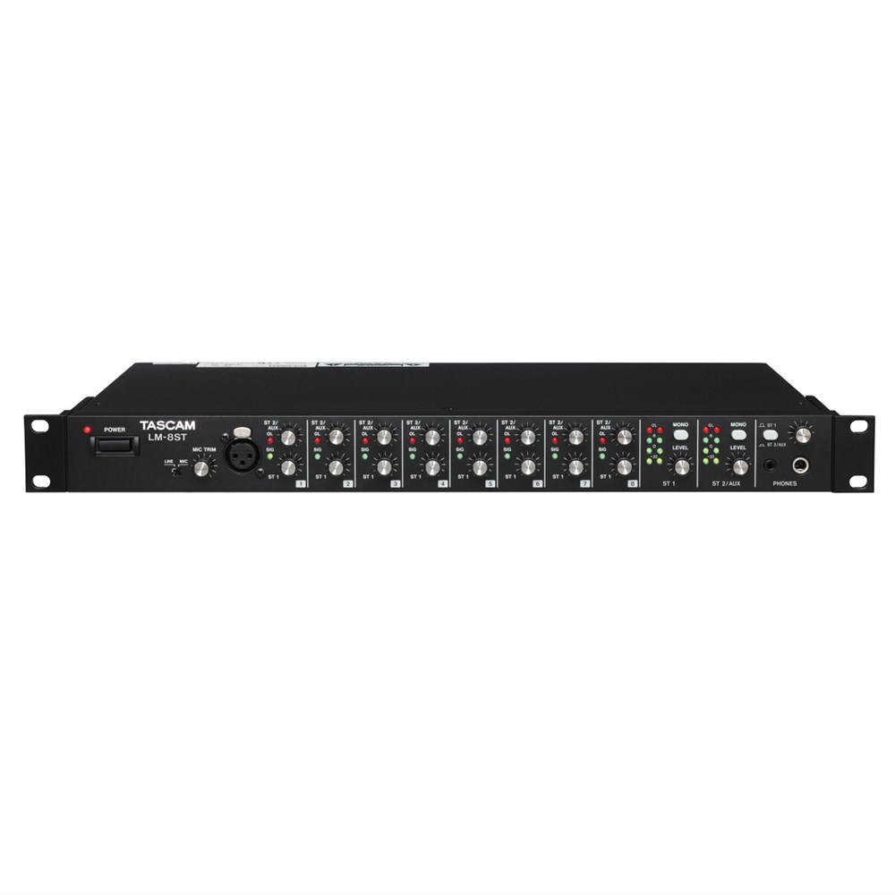 The LM-8ST is a line mixer that mixes eight stereo line inputs. In addition to the TRS balance line inputs available for each channel, an XLR balanced mic input is possible with channel-1. The LM-8ST supports a simple PA system that requires a microphone.