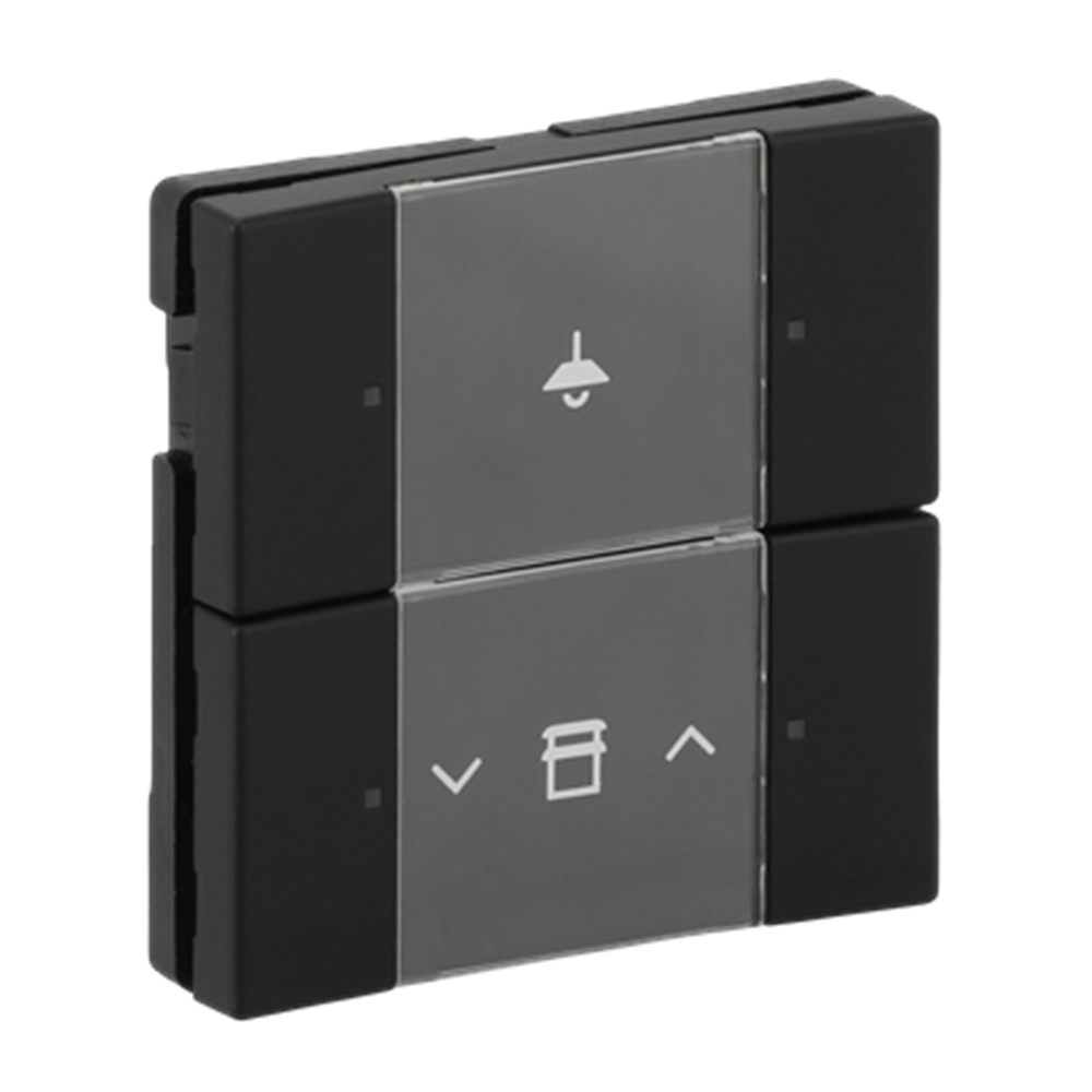 For ABB i-bus® KNX 6120/12-101, 6120/13. With labelling field. Support of KNX functions through innovative colour concept (yellow=lighting, blue=blind, orange=RTC, magenta=scene and white=neutral/no function assigned) or standard illumination red/green. Push switch function: switching / dimming / blind / sending values / scenes etc. Transparent labelling sheet with standard symbols included in delivery. Incl. 10 logic channels (light scene actuator, sequence actuator, logic gates, etc.).