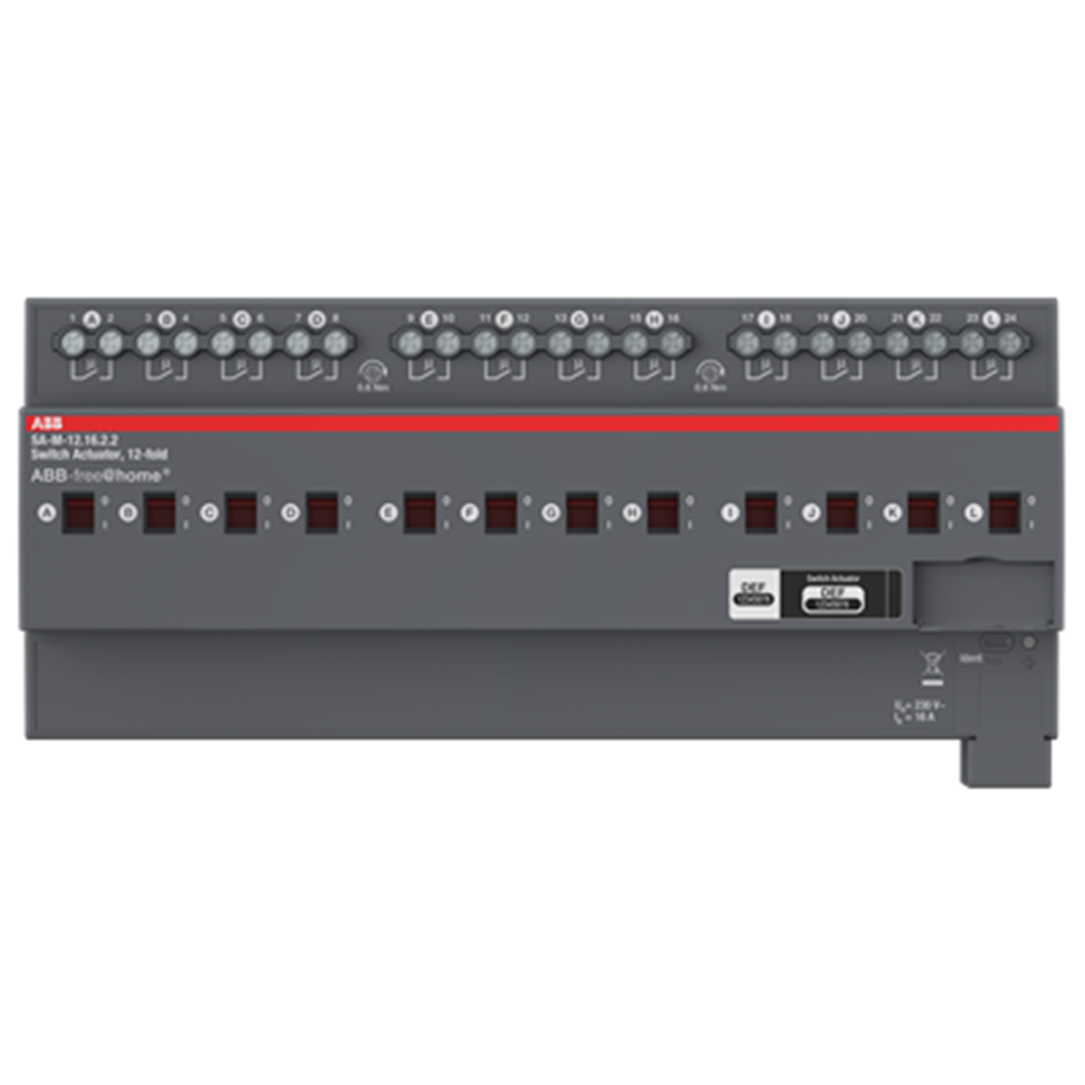For switching 12 independent 127 V~/230 V~ loads. Each contact has a manual operation function independent of auxiliary voltage for additionally displaying the contact setting. The bus can be connected via enclosed terminal block.