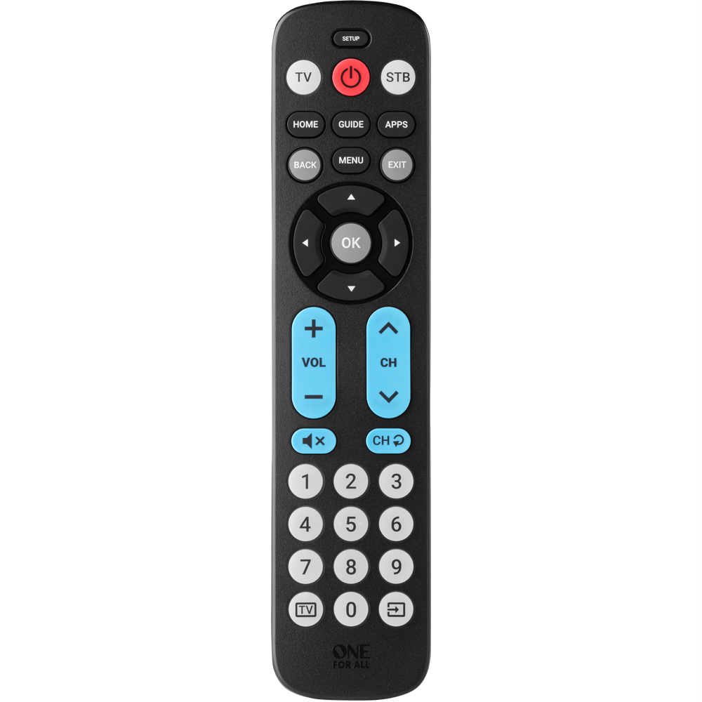 Ergonomically designed, the Big Button remote control has a comfortable grip and stability on your table. Get optimal navigation with the large blue keys. This remote works for everyone who wants to simplify control of complex devices.