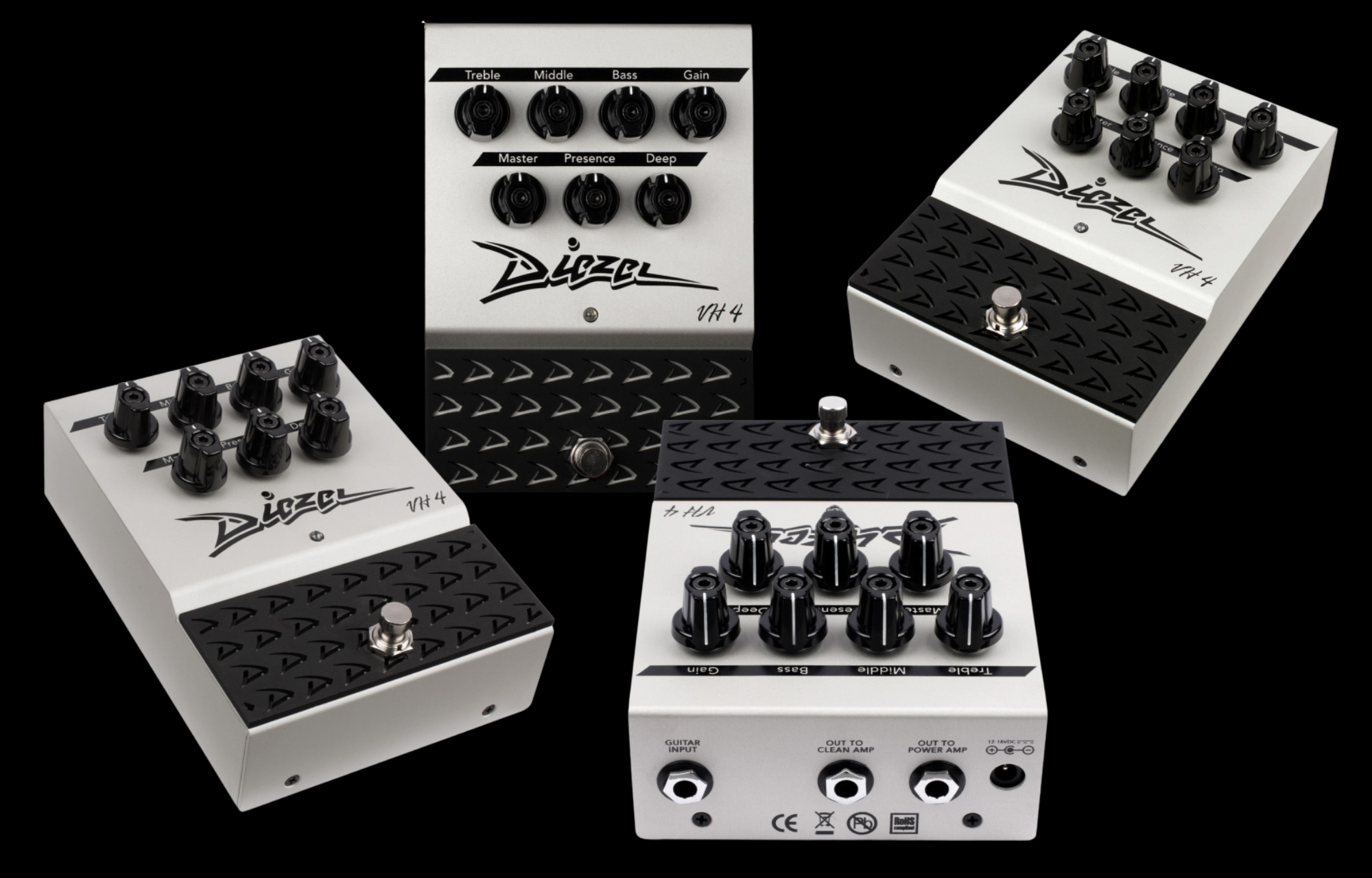 Diezel VH4 Pedal All Analog pedal based on legendary VH4 Amp Unlike typical overdrive pedals, the VH4 Pedal is a true preamp that delivers genuine Diezel tone—no emulation, just pure authenticity. Its full EQ section (Bass, Mid, Treble, Deep, and Presence) lets you shape the signature VH4 sound, while the Gain control covers everything from sparkling cleans to searing leads. Use it as an overdrive into your amp’s front end or as a standalone preamp into a power amp for raw Diezel power. It includes two outputs: one for standard amp input, the other for connecting directly to a power section.