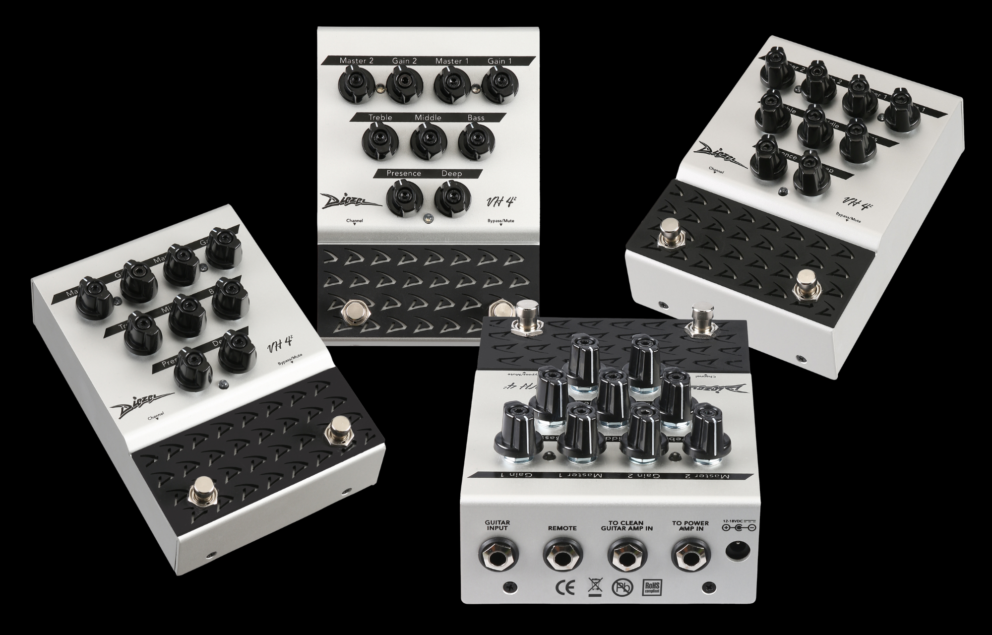 Diezel VH4-2 Pedal All Analog 2 channel pedal based on legendary VH4 Amp In 1994, Peter Diezel unknowingly launched a tone revolution with the creation of the DIEZEL VH4 amp. Its legendary third channel became the secret weapon of players like James Hetfield, Adam Jones, and Neal Schon. Now, the VH4-2 preamp/overdrive pedal brings that iconic high-gain tone to your pedalboard. Featuring two foot-switchable channels for rhythm and lead, it works seamlessly in front of a clean amp or straight into a power amp. The VH4-2 delivers the aggression, clarity, and punch of the original VH4, all with Diezel’s renowned craftsmanship and quality. Plug in and unleash a VH4 stack under your feet.