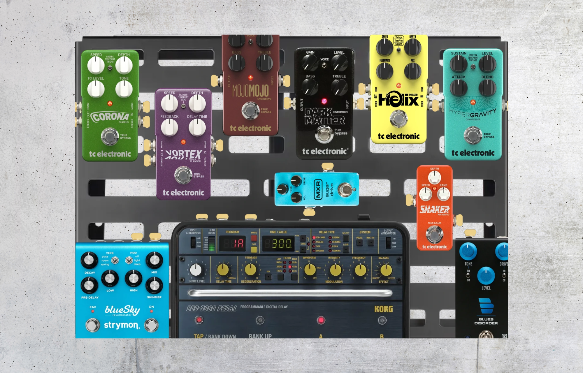 Build Your Own Board RockBoard® Board Configurator The RockBoard® Board Configurator is a comprehensive platform for setting up your pedals on our RockBoards. Our constantly updated database already includes more than 12000 pedals. Musicians working with effect pedals can use the Rockboard® Board Configurator to delve deeply into the details of configuring a pedal chain for their desired sound. The user-friendly interface allows you to quickly populate and configure a pedalboard, share it with other users and exchange ideas. Not only can pedals be arranged on the board, but more importantly for most musicians, they can now be connected. Connector formats and cable lengths are taken into account when calculating the required board space. Power consumption and polarities are also taken into account to save the user a lot of planning and research.