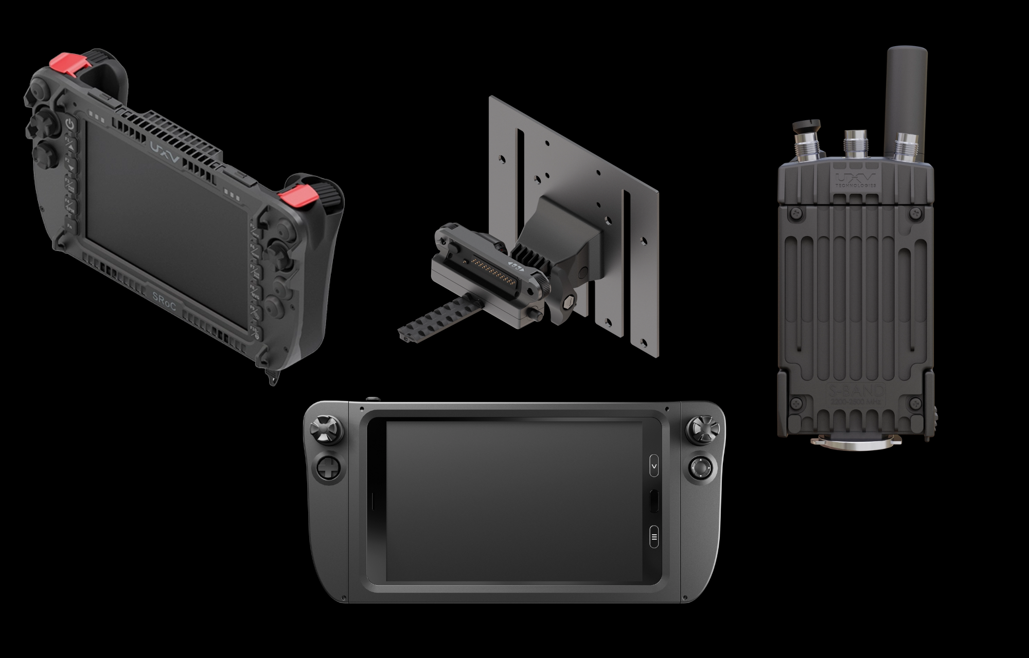 Ground Control Stations Rugged | Industrial | Accessories | SRM / Radios UXV Technologies specializes in customized ground control stations (GCS) for unmanned systems, including aerial and ground vehicles, focusing on enhancing operational efficiency, safety, and user experience in demanding environments. Their GCS offerings, such as the rugged Aeronav and modular SRoC series, are built for flexibility and seamless integration with various platforms. Models like the SRoC DualGrip and SRoC 7" Android combine rugged design with user-friendly controls, meeting high standards like IP65 and MIL-STD-810H. UXV also prioritizes energy efficiency with solutions like the SRM-S and collaborates closely with partners—including Rheinmetall Canada—to tailor and refine their technologies for mission-specific requirements.