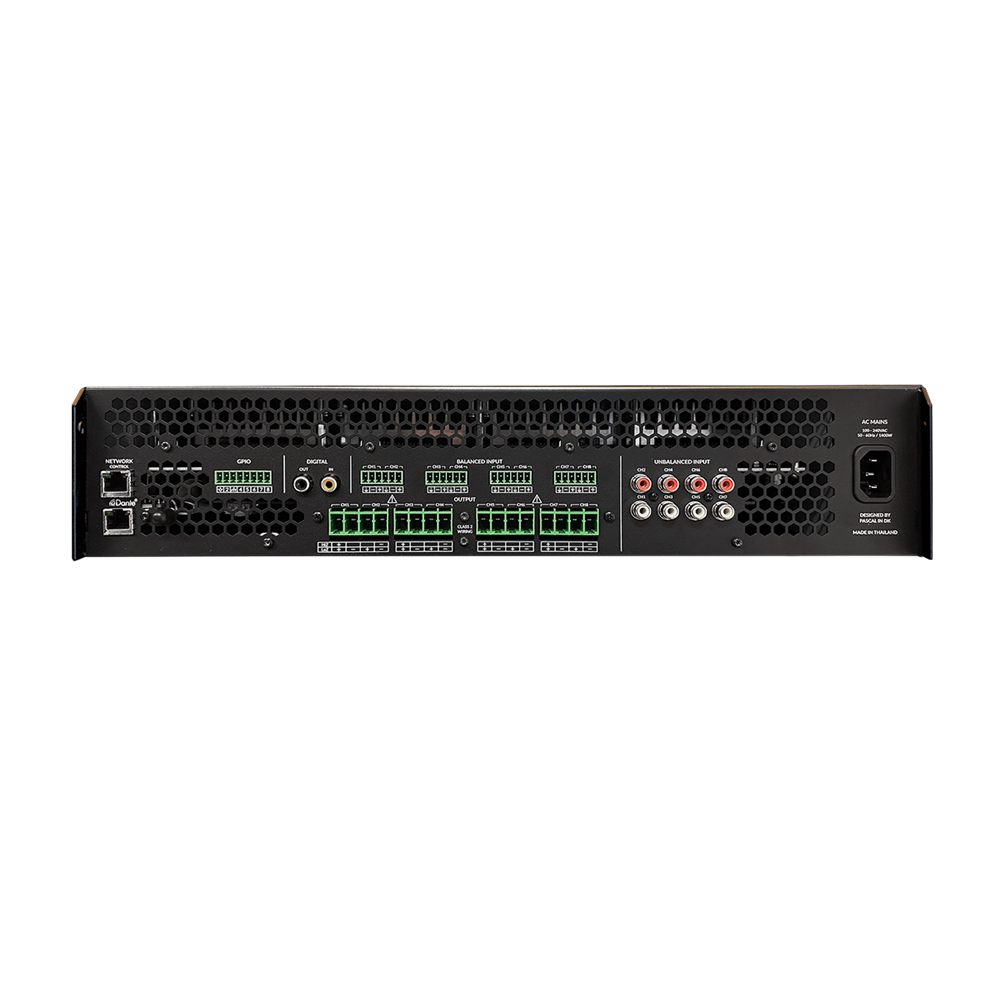 PowerZone Connect 6008D. 6000W 8-channel DSP-enabled power amplifier. Dante. 2RU.