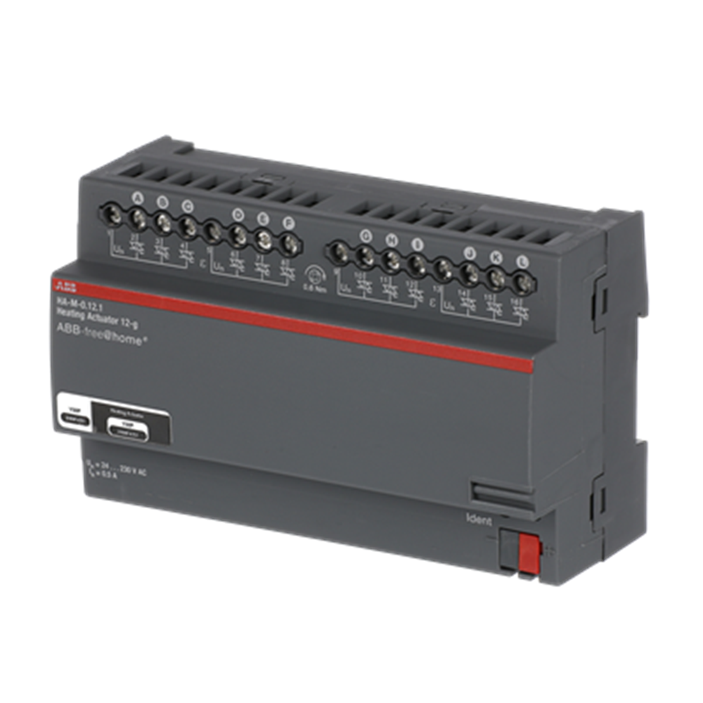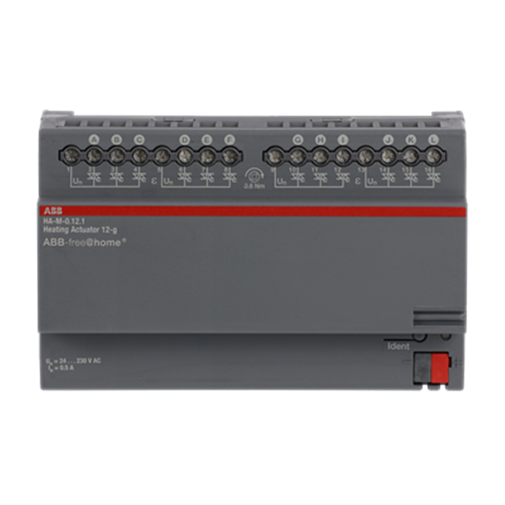 For controlling thermoelectric actuating drives in heating/cooling systems. The outputs are protected against short-circuit and overload. The bus can be connected via enclosed terminal block.