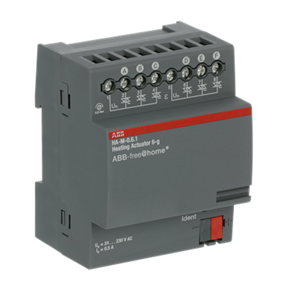 For controlling thermoelectric actuating drives in heating/cooling systems. The outputs are protected against short-circuit and overload. The bus can be connected via enclosed terminal block.