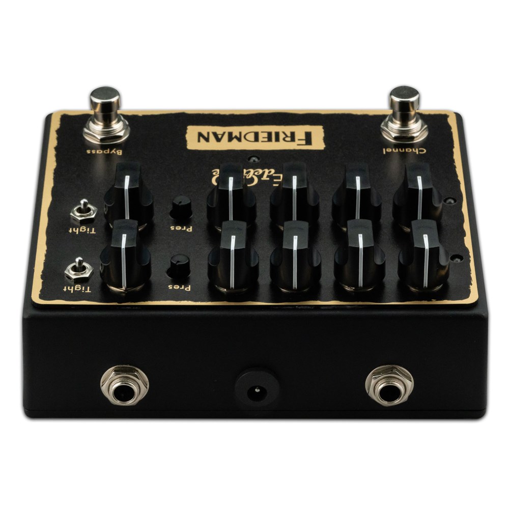 This "BE" dual overdrive pedal captures the tone of the now legendary Friedman BE-100 amplifier, which has graced the stages of world class musicians the world over. The original Friedman BE-OD single channel pedal took the industry by storm. Tens of thousands of pedals sold worldwide and it's still going strong! This new BE-OD Deluxe pedal employs the exact same circuit but adds another channel and dual midrange controls. The top row (Channel 1) is identical to the original BE-OD pedal while Dave voiced the bottom row (Channel 2) with slightly lower gain. Dual "BE" channels in your arsenal allow you to perfectly set both your rhythm and lead sounds. The BE-OD Deluxe delivers authentic tube amplifier sound with the controls needed to shape your tone. Controls include: 3 position tight switch, volume, gain, bass, middle, treble and presence knobs. These responsive controls will take you from mild overdrives to straight up gain nirvana. Built in the USA and designed to withstand decades of abuse, the BE-OD Deluxe is a must have pedal for any tone enthusiast.