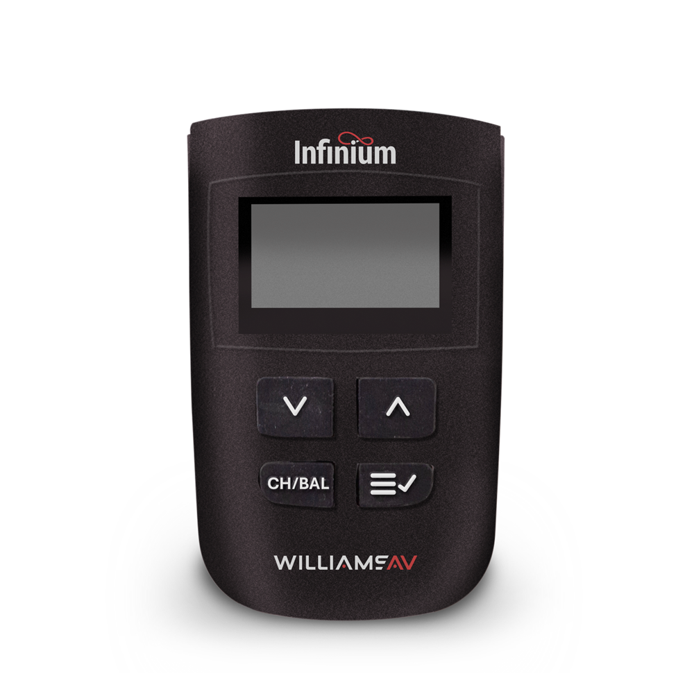 Earphones, neckloops, and charging dock sold separately. Dimensions 3.9″ x 2.48″ x 0.85″99 x 63 x 21.6 mm Dimensions with Belt Clip 3.9″ x 2.48″ x 1.19″99 x 63 x 30.2 mm Weight 3.8 oz (107.7 g) Shipping Weight 4.5 oz (127.6 g) Color Black Battery Type Lithium Ion (Li-ion) Camera Style Rechargeable Battery; Field Replaceable Battery Size 3.7 Vdc, 1200 mAh Battery Life > 20 hours Temperature Range – Operating +14° F to +104° F (-10° C to 40° C) Temperature Range – Storage -4° F to +122° F (-20° C to +50° C) Temperature Range – Charging +41° F to +114° F (+5° C to 40° C) Charging Connections Dual contacts for use with Infinium Drop In Chargers or USB-C Connector Button Controls Power, Increment, Decrement, CH/BAL, Menu/Select Display OLED display 1.38 x o.69 in (35.1 x 17.5 mm), Diagonal 1.54″ (39.2 mm) Belt Clip Removable Audio Output Connector 3.5 mm stereo jack for wired stereo or mono headphones, earphones or neckloops Approvals FCC, RoHS3, WEEE, Industry Canada/ISED, CE, UKCA, RCM, CB Scheme Warranty 2-years parts and labor USB-C Connection Power/Charge (5V @~500 mA)Firmware Updates