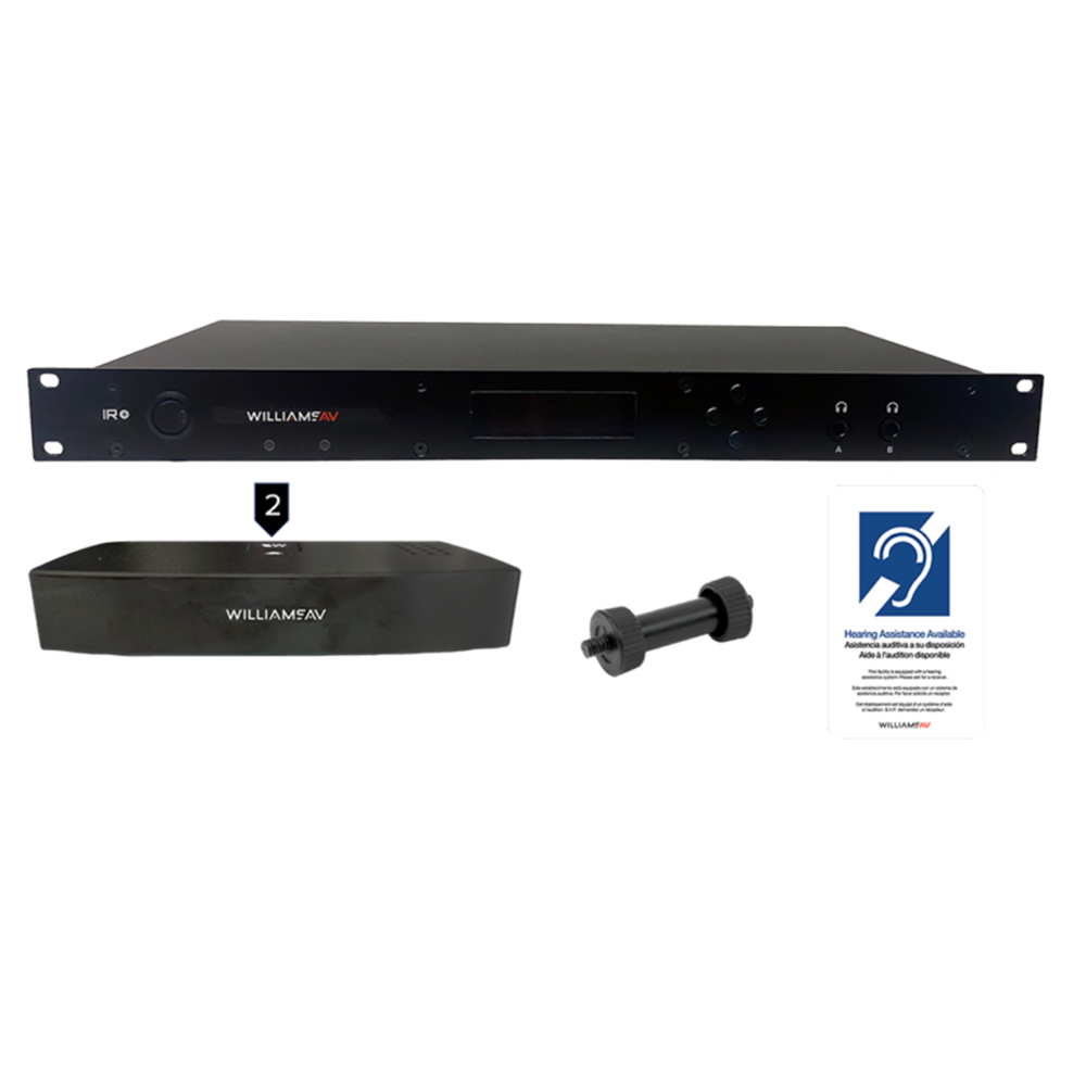IR+ system features with two emitters, bracket and ADA sign. This system features Dante.