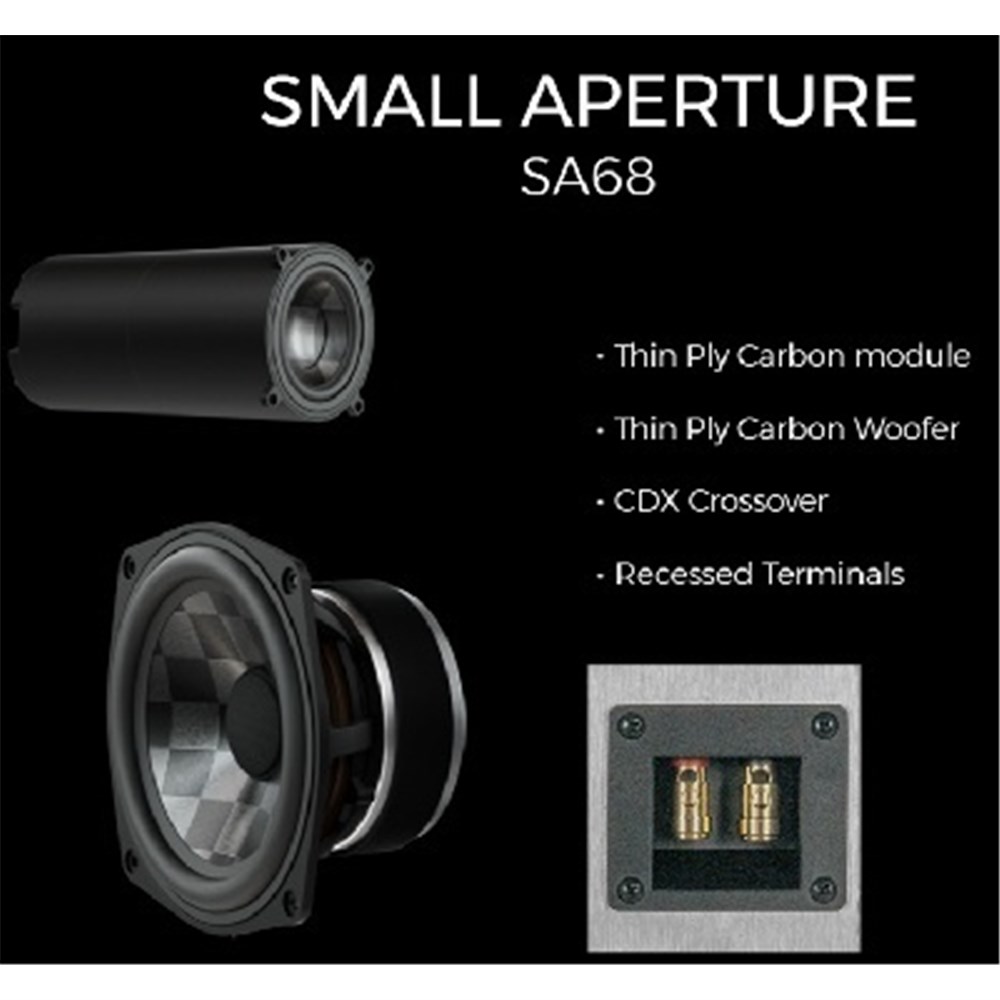 Behind its minimal footprint, the SA68 delivers a broad frequency response of 45Hz–25kHz, powered by a custom 6.5" carbon fiber woofer and 2.0" full-range driver. These components utilise Thin Ply Carbon—an advanced material used in aerospace and motorsports—for light weight, superior strength, and precision sound reproduction.