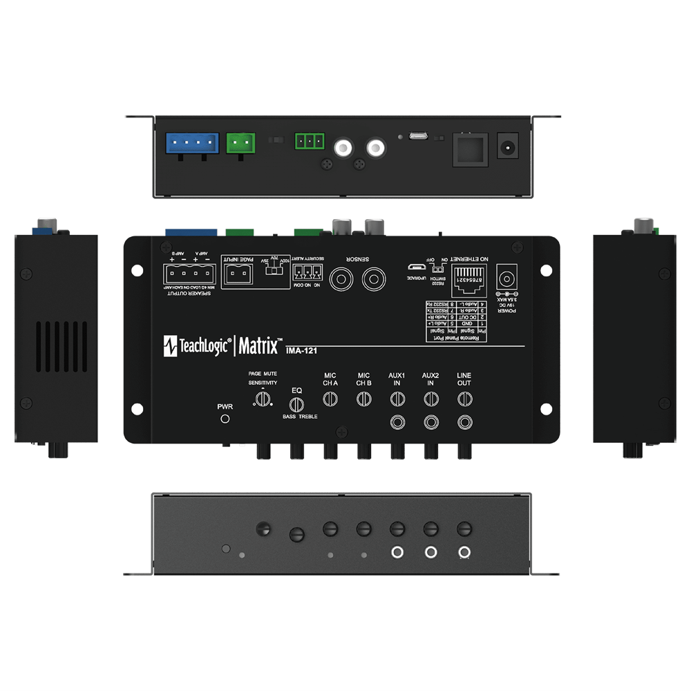 The controller has an intuitive touch interface with the additional benefits of Bluetooth and an additional 3.5 mm input. When combined with up to 2 wireless microphones and four (8-ohm) overhead speakers, the Matrix™ is more than just a sound system…it creates a true “Sound Field” in the classroom so every student hears all audio sources equally well.