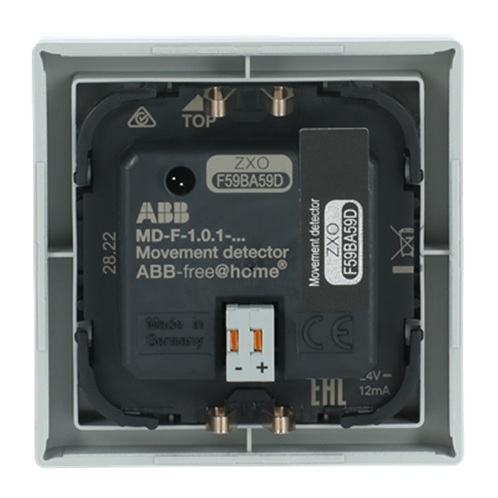 With select lens for detection with animal access. For automatic switching of ABB-free@home® actuators dependent on movement and brightness. Switch-off delay of the actuator can be programmed via the web interface of the System Access Point. The bus can be connected via enclosed terminal block.