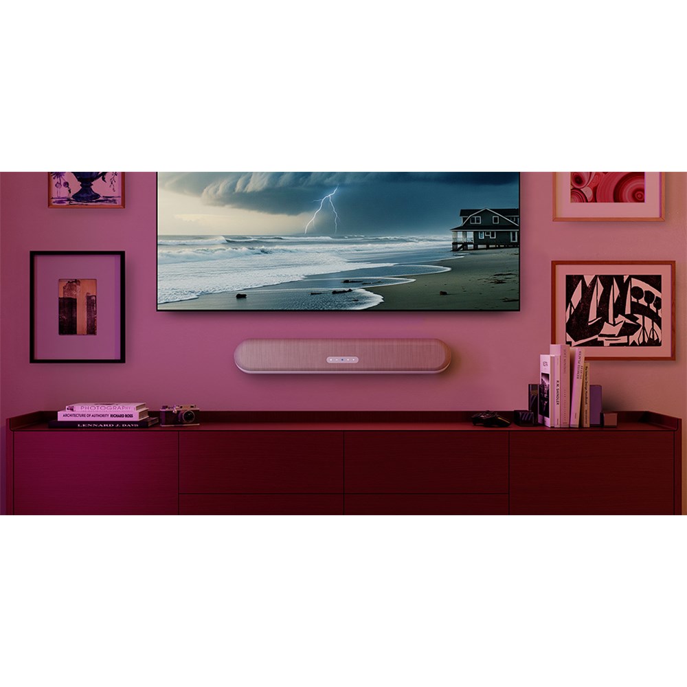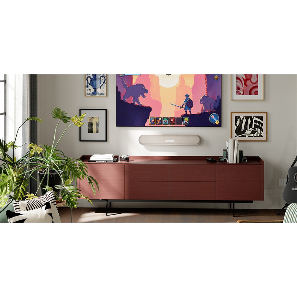 With its minimalist form, refined aluminum body chassis, and tonal weave fabric, the PULSE CINEMA MINI blends beautifully into any space. Whether mounted below a TV screen or placed on a credenza, it keeps your setup clean and unobtrusive. Automatic orientation sensing ensures optimal sound performance no matter where you place it.