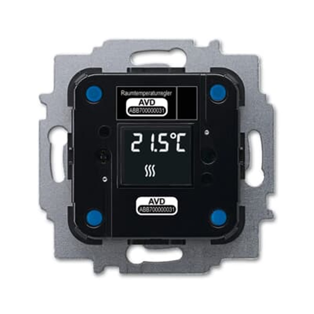Heating/cooling operation. Communication with the free@home system is carried out wireless. Control element with room temperature controller function. With display of set-value temperature. In connection with temperature sensor 6226/T the integrated room temperature controller can be fitted with a remote sensor. Only to be used in combination with ABB-free@home® room temperature controller cover plates 6235-xxx. With fixing claws.