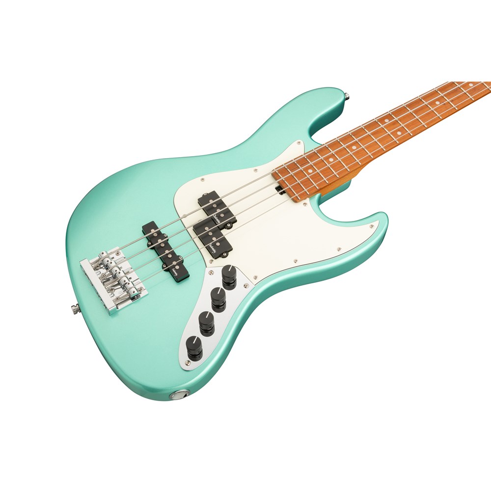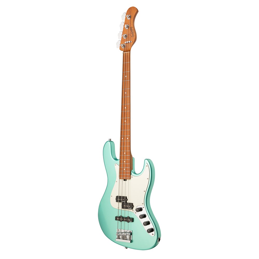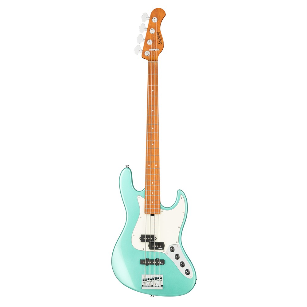 Roger Sadowsky’s goal has always been to improve on bass design by making some very unique and important enhancements. Through the use of his proprietary special electronics, light-weight tuners and selected tone wood, Roger has raised this MetroExpress 21-Fret Hybrid P/J 4-String Bass to a whole other level! Features include a light-weight solid Okoume body finished in Solid Sage Green Metallic High Polish with a parchment pickguard, a roasted maple neck and a roasted maple fingerboard, this is one fantastic looking and playing bass that we are sure you will love to play! Our MetroExpress basses are the easiest way for you to access that famous Sadowsky tone: Never harsh or shrill sounding, with strong, powerful but never muddy bass, with present, but not too aggressive mids, and a sweet, airy treble.