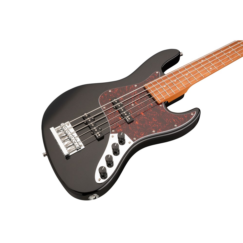 Roger Sadowsky has always improved bass design by making some very unique and important enhancements. Thanks to his proprietary special electronics, light-weight tuners and selected tone wood, Roger offers you the left-hand Sadowsky MetroExpress 21-Fret Vintage J/J 5-String Bass, an instrument at home both on stage and at home. Features of this bass include a light-weight solid Okoume body fitted with J/J pickups, finished in Solid Black High Polish with a tortoise pickguard, a roasted maple neck and a roasted maple fingerboard. Together this makes one formidable bass that you are going to love to play! Best of all, the accessible price gives you access to that famous Sadowsky tone: Never harsh or shrill sounding, with strong, powerful but never muddy bass, with present, but not too aggressive mids, and a sweet, airy treble.