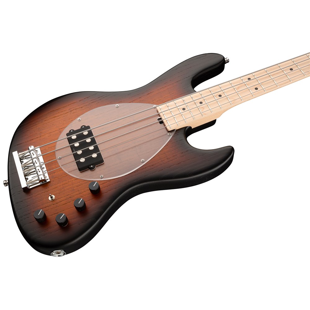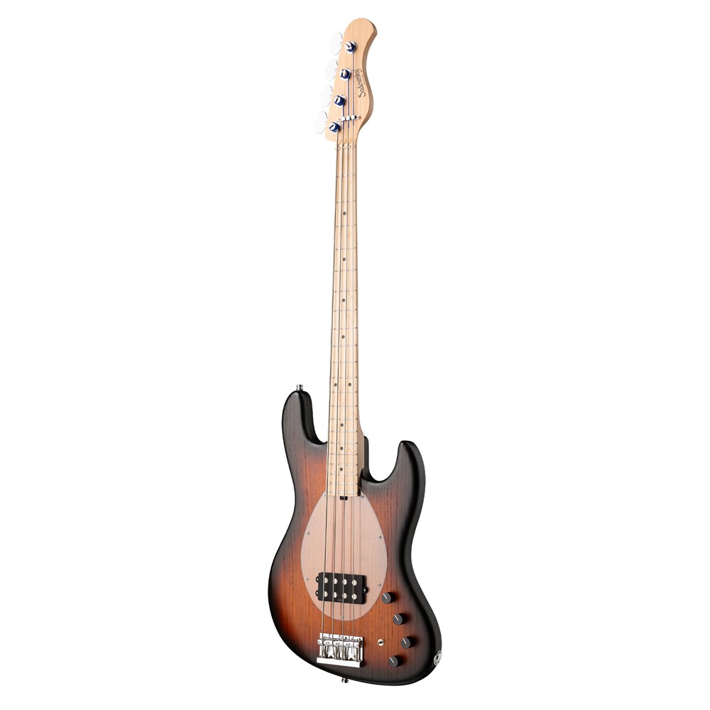 Roger Sadowsky's goal was always to further improve an already very successful bass design by making a number of detailed improvements. Along with the electronics, which he developed by himself, he succeeded to raise the well-known vintage M bass sound to a new level, so today you can speak of a typical Sadowsky tone: Never harsh or shrill sounding, with strong, powerful but never muddy bass, with present, but not too aggressive mids, and a sweet and airy treble range. This modern bass sound can also be found in the Sadowsky MetroLine 21-Fret Vintage M Bass line of basses. This 4-string bass, seen here in an Almond Sunburst Transparent Satin finish, features a sleek, undersized, chambered J-Style body made from American Swamp Ash. The neck is made of American Maple and features an American Maple fingerboard. Special features of this bass include a Sadowsky M pickup, active electronics with true bypass, Vintage Tone Control, treble and bass boost, and a 3-way toggle switch for humbucker pickup configuration (series / parallel / single coil). This bass also features light open gear Sadowsky tuners and the Sadowsky Quick String Release Bridge. Sadowsky MetroLine 21-Fret Vintage M basses are made exclusively in Germany. The weight of this bass is never more than 8.9 lbs (4.0 kg). A good choice for players who want a lightweight bass that offers a modern bass sound.