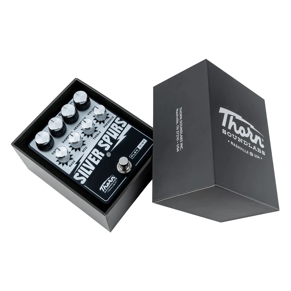 The Thorn Silver Spurs – Flex Dist is a versatile distortion pedal that delivers powerful, dynamic tones with complete control. Featuring a comprehensive set of controls, including Gain, Damping, Headroom, Volume, Bass, Mid, Treble, and Presence, this pedal allows you to craft everything from subtle overdrive to aggressive, high-gain distortion, making it perfect for a wide range of musical genres. Whether you're after smooth distortion or aggressive, high-gain tones, the Thorn Silver Spurs – Flex Dist provides the flexibility and control to shape your sound with precision.