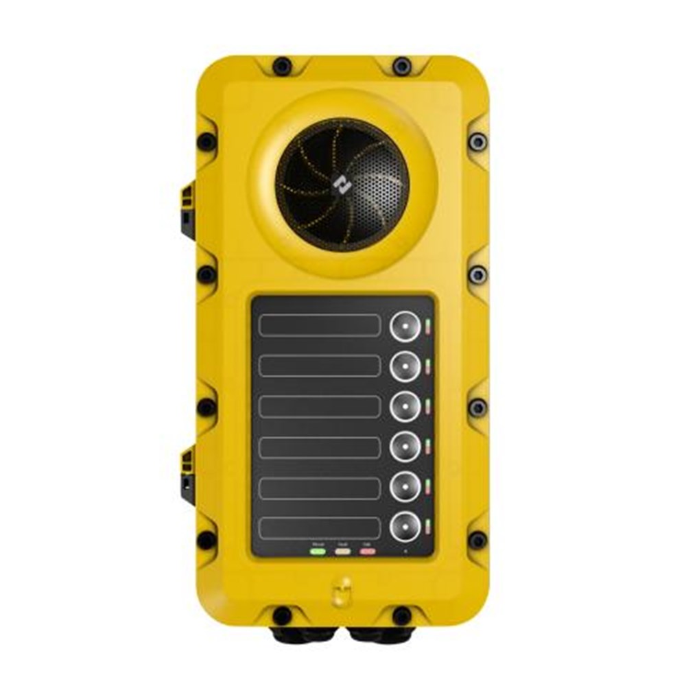 The TFIE-2 Industrial intercom station is a rugged device, designed for harsh environments and meets industrial and offshore requirements. The plastic housing is designed to withstand most chemical and environmental hazards found on- or offshore. The TFIE-2 features 6 programmable, labelled buttons and optional key covers for alarm panel duties. The intercom station is fully digital and offers crystal clear audio with high output through a 10 W internal amplifier and 78 mm speaker, offering up to 100dB SPL.