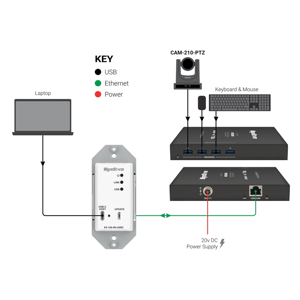 EX-100-IW-USBC USB-C Extender Set .Single gang In-wall . HDBT3