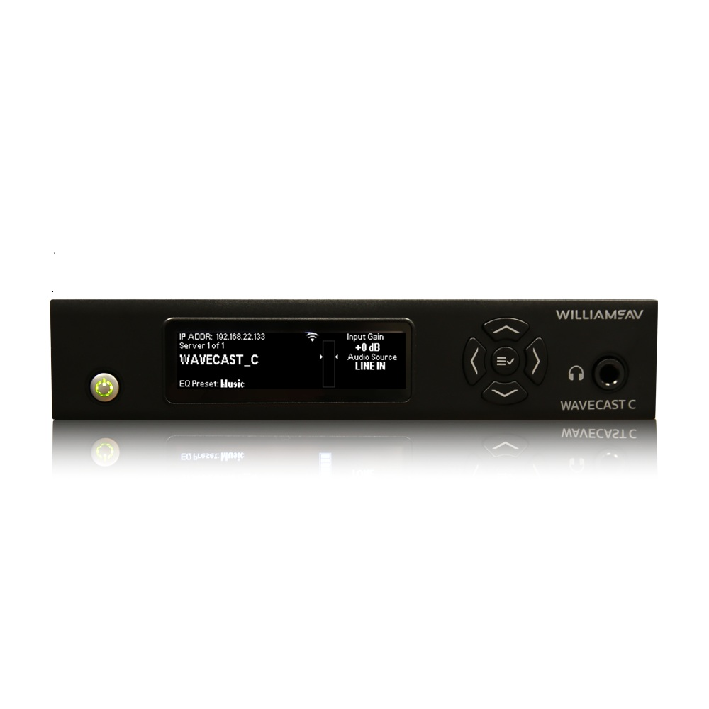 WaveCAST C is a Wi-Fi audio platform designed for pro-audio applications where high-quality sound is required. The audio is streamed to an app on personal devices or a Wi-Fi receiver, which can be used for assistive listening and other purposes. WaveCAST C integrates with third-party room systems allowing AV professionals to control with Telnet commands via Ethernet.