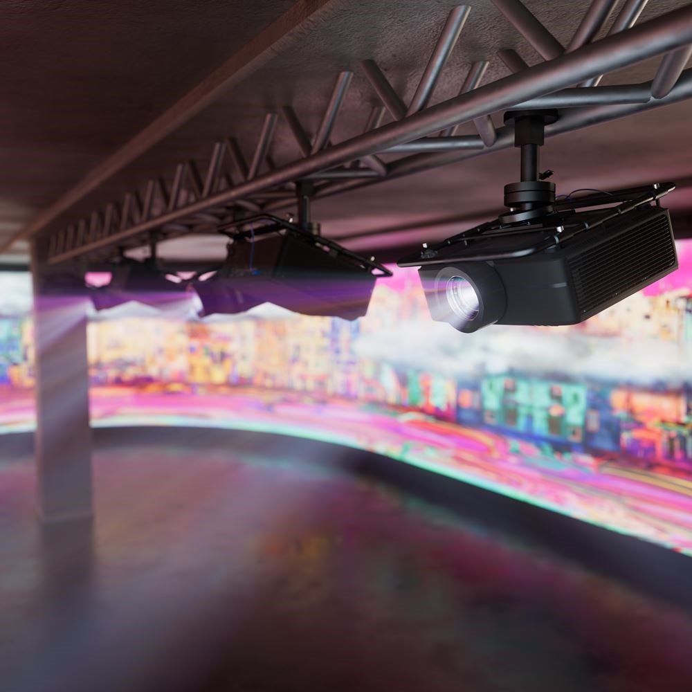Integrated warping and edge blending processor enables multiple projectors to be warped and blended without additional dedicated hardware, reducing the cost & complexity of installation. Warping and edge blending is configured using either the projectors on screen display or with PC software depending on model. Compatible multi output graphics card with overlap function is required.*