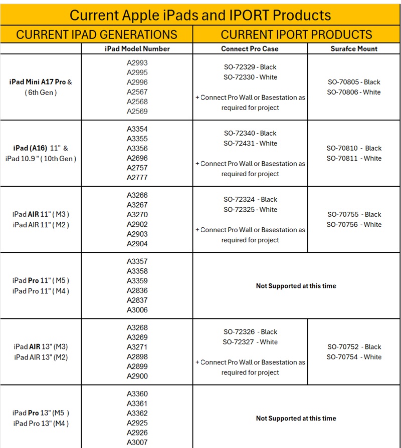 CONNECT PRO is the next generation of IPORT products for enabling iPad mobility in residential and commercial applications. Built upon a highly capable and modular platform, the CONNECT PRO line of products provide an unparalleled breadth and depth of capabilities for holding, charging, protecting and connecting iPad and iOS Devices. The CONNECT PRO Case provides both a Station interface and a Dock interface connector, allowing iPad to mount and connect to any product in the lineup. Case protects iPad from drops and falls up to 2 meters. Enable the Case lock to prevent un-authorized USB-sync or removal of iPad from the case. Combine the internal lock with any Station containing a Case lock to deliver a fully secure temporary locking system. Add a hand strap at any point for extra utility or use the strap loops to connect a shoulder strap or any other harness. Use commercial cleaners with confidence to wipe down the entire case, including exposed electronics for a fully sanitary solution. The Case is ready out of the box for charging, USB communications and network data connections in concert with capable mounting stations (stations sold separately). Utilize all iPad features while in the Case including power button, microphones and speakers. The symmetrical front bezel with hidden speaker wave guides enables a refined aesthetic when mounted on a wall. Say hello to the flexible future of mobile business with IPORT's CONNECT PRO suite of products and CONNECT PRO Case at the core.