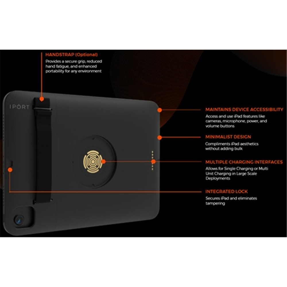 CONNECT PRO is the next generation of IPORT products for enabling iPad mobility in residential and commercial applications. Built upon a highly capable and modular platform, the CONNECT PRO line of products provide an unparalleled breadth and depth of capabilities for holding, charging, protecting and connecting iPad and iOS Devices. The CONNECT PRO Case provides both a Station interface and a Dock interface connector, allowing iPad to mount and connect to any product in the lineup. Case protects iPad from drops and falls up to 2 meters. Enable the Case lock to prevent un-authorized USB-sync or removal of iPad from the case. Combine the internal lock with any Station containing a Case lock to deliver a fully secure temporary locking system. Add a hand strap at any point for extra utility or use the strap loops to connect a shoulder strap or any other harness. Use commercial cleaners with confidence to wipe down the entire case, including exposed electronics for a fully sanitary solution. The Case is ready out of the box for charging, USB communications and network data connections in concert with capable mounting stations (stations sold separately). Utilize all iPad features while in the Case including power button, microphones and speakers. The symmetrical front bezel with hidden speaker wave guides enables a refined aesthetic when mounted on a wall. Say hello to the flexible future of mobile business with IPORT's CONNECT PRO suite of products and CONNECT PRO Case at the core.