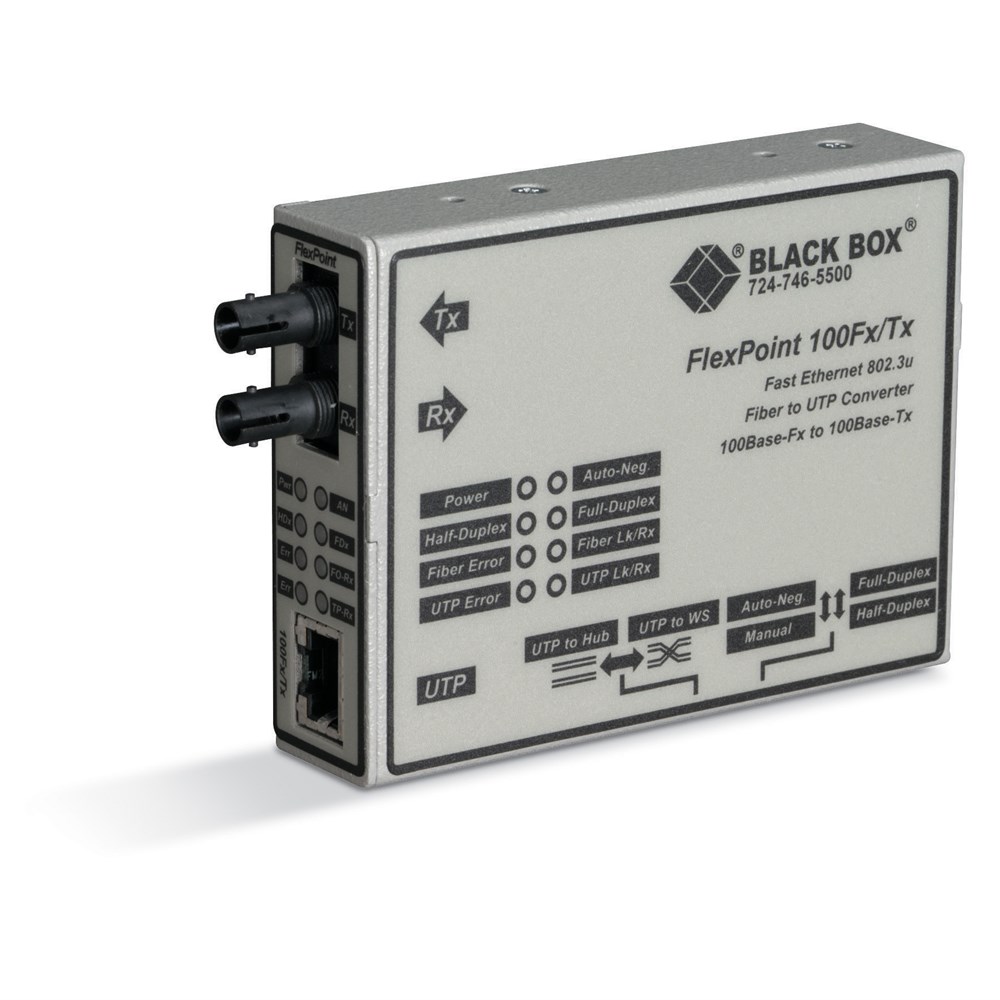 FlexPoint™ Converters from Black Box are versatile and cost-effective standalone converters that you can upgrade to a chassis-based system. They provide the ultimate in flexibility and reliability for your expanding multimedia LAN.