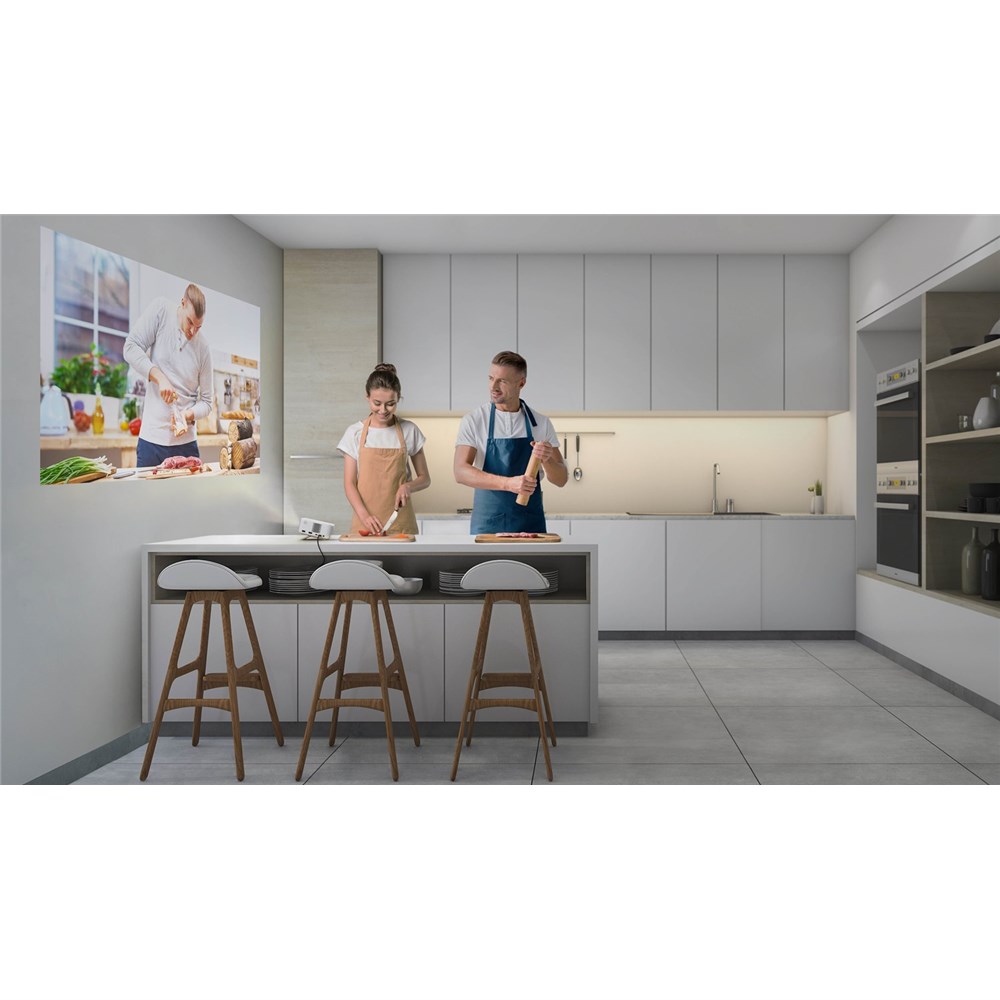 Innovative Time-of-Flight (ToF) technology delivers automatic geometric and focus correction to create a perfectly projected image within an instant. Plus, four-corner correction provides instant place-and-play. Home users can take advantage of the convenient USB-C power input port, enabling them to use PD 3.0 portable charging batteries,¹ to enjoy video content on-the-go for outdoor movies, camping, holidays, and more.