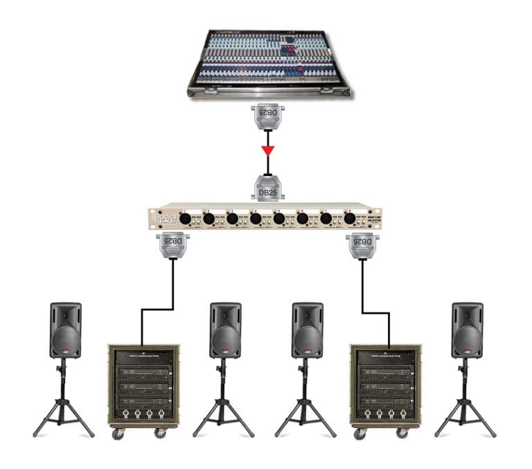 The Radial LX8™ is an eight channel passive line-level splitter designed to send multiple channels to three destinations at once, while providing transformer isolation and eliminating hum and buzz caused by ground loops.