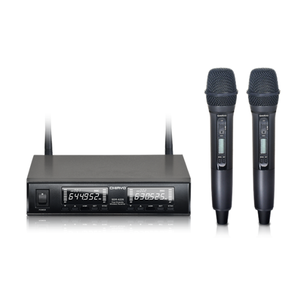 SDR-6220 IrDA is a professional wireless microphone system with stylish contour and useful functions. The built-in channel-scanning works with the industry-leading IrDA® 2-way channel synchronizing technology to rapidly complete setting of non-interference channels. High contrast LCD on the front panel displays antenna selection status and setting details, as well as monitoring the battery status and input volume of the connected transmitter to ensure the best sound quality. Easily complies with school, conference, karaoke and public broadcasting requirements.