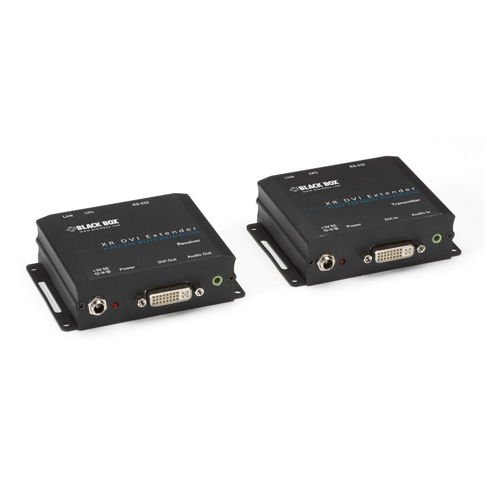 Put a digital DVI screen up to 330 feet (100 m)* from a video source and control a monitor via RS-232 TXD and RXD control signals with this extender. Extending over a single CAT5e/6/7 cable, the transmitter-receiver combo supports both HDTV resolutions and VESA standards. The extender makes it easy to send digital 1080p-quality video and 2-channel stereo analog audio plus serial RS-232 control signals to a distant screen or projector. Audio is integrated into the CATx cable extension, so you don't need a separate cable to transmit audio from the source to the screen. Because the extender supports bidirectional RS-232 control, you can use serial commands from a PC to control RS-232 equipment or turn a remote screen on and off to save energy in your video application. Plus, the XR DVI-D Extender with Audio, RS-232, and HDCP supports EDID and HDCP bypass, so you can also extend content from a protected-content source.*Distance depends on the characteristics and quality of the cable and the type of DVI source and display.